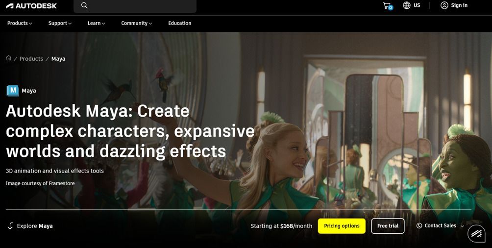 Сильними сторонами Maya є її глибина та точність, особливо у задачах анімації й VFX, а також широке використання в індустрії. Інструмент добре інтегрується в пайплайни виробництва та підтримує кастомізацію через скрипти й плагіни. Водночас це складне програмне забезпечення з високим порогом входу, і для комфортної роботи потрібен час на навчання. Крім того, Maya є платним рішенням, що також варто враховувати.