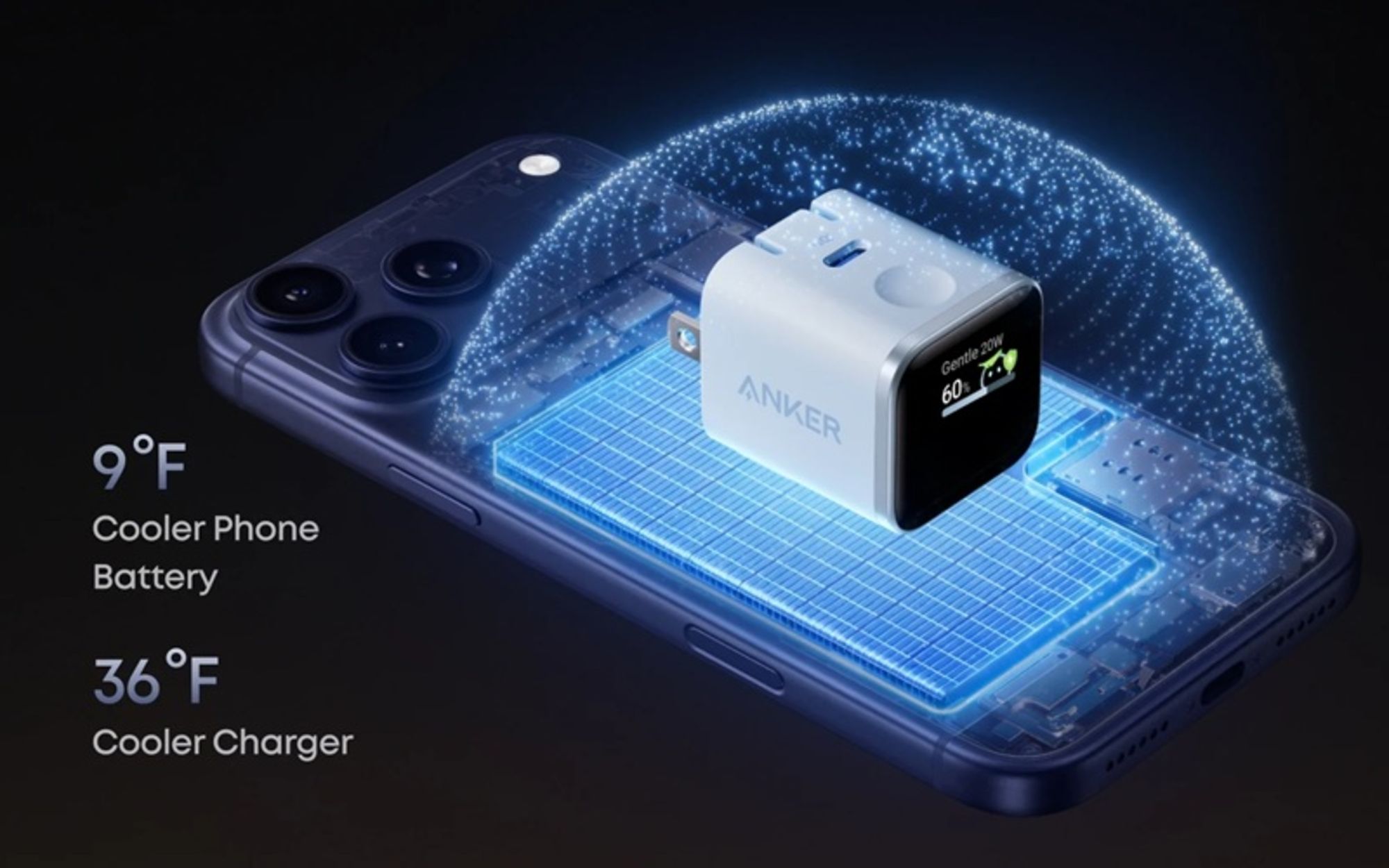 Пристрій оснащений вбудованим дисплеєм, який відображає швидкість зарядки та інші технічні параметри роботи. Окремо реалізовано інтелектуальні функції: під час підключення iPhone адаптер автоматично визначає модель смартфона й регулює потужність зарядки для зменшення навантаження на акумулятор. Ця можливість працює лише з пристроями на iOS.