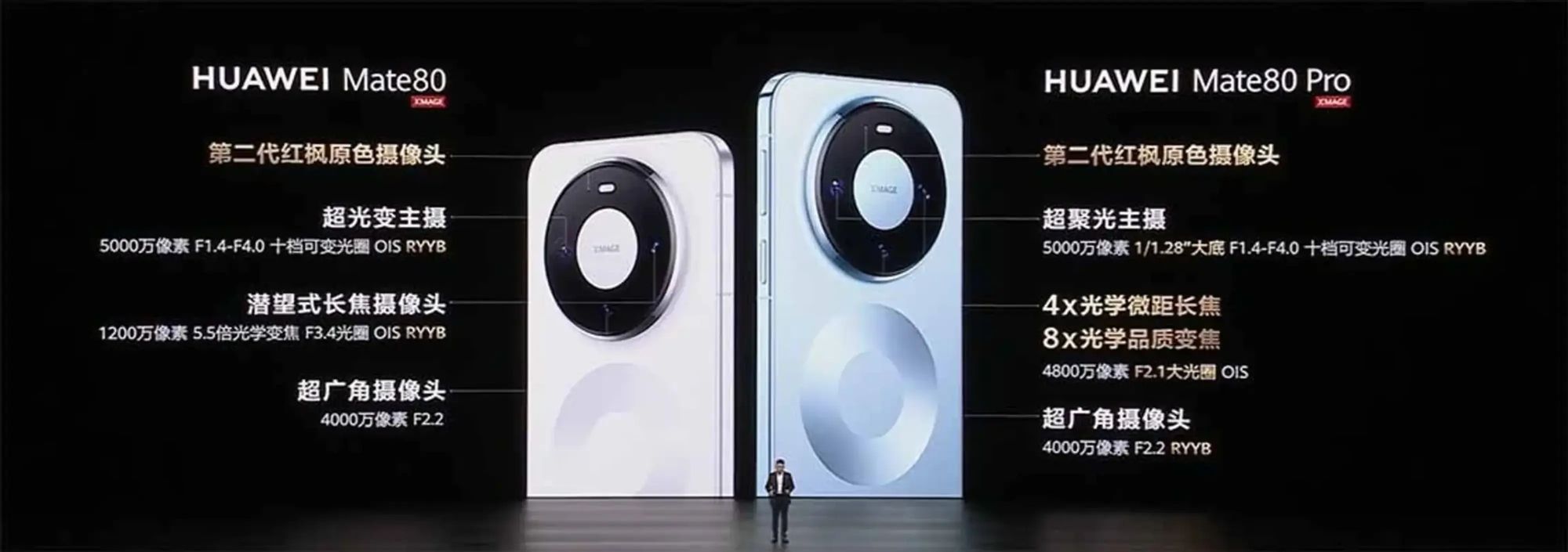 У Mate 80 Pro встановлено вдосконалену перископічну систему з підтримкою макрозйомки, тоді як Mate 80 Pro Max і Mate 80 RS оснащені двома 50-Мп телеоб’єктивами з оптичним зумом 6,2–12,4×. Усі моделі використовують алгоритми XMAGE для покращеної обробки фото.