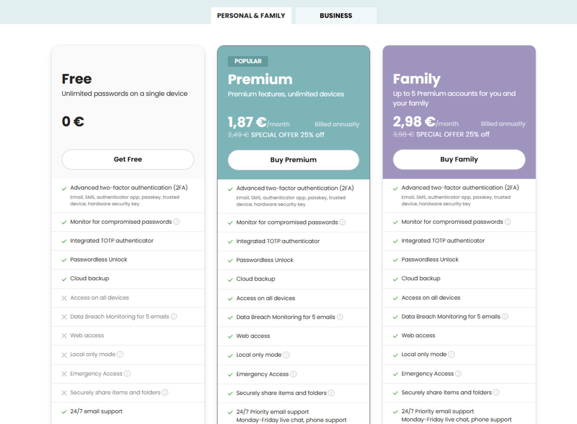 Вартість підписки залишається однією з найнижчих серед відомих менеджерів паролів — приблизно від €18–28 на рік залежно від акцій.