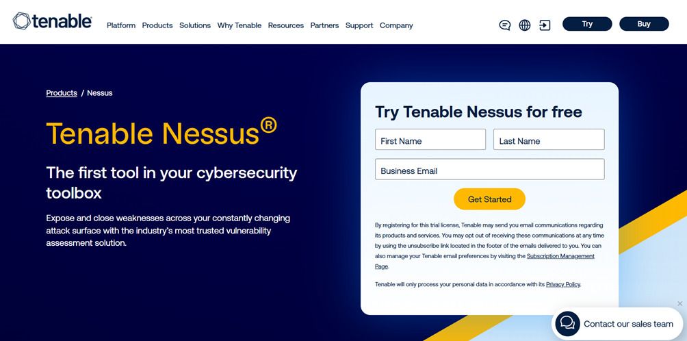 Tenable, Inc. Nessus — це провідне комерційне рішення для сканування вразливостей в ІТ-інфраструктурі, вебдодатках, операційних системах і хмарних середовищах. Спочатку запущений як інструмент з відкритим кодом, він тепер є комерційним продуктом із гнучкими варіантами ліцензування (наприклад, Nessus Professional, Nessus Expert).