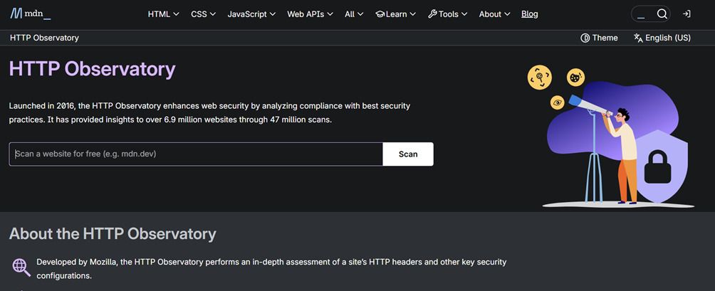Mozilla HTTP Observatory — це безкоштовний інструмент від Mozilla/MDN, який перевіряє налаштування HTTP-заголовків і низку супутніх параметрів безпеки вашого сайту, даючи чіткі рекомендації для їх виправлення. Він орієнтований на попереджувальну оцінку (hardening) — тобто допомагає виявити відсутні заголовки, помилки в політиках безпеки та проблеми з TLS/сертифікатами, але не замінює глибокого пентесту чи сканера вразливостей.