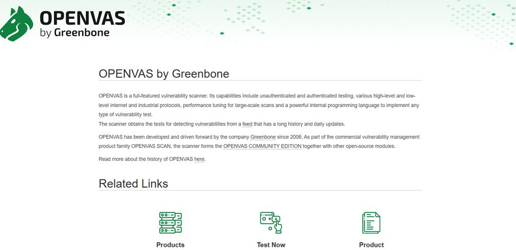 OpenVAS — це рішення з відкритим кодом для сканування вразливостей, яке сьогодні розвивається компанією Greenbone Networks як частина платформи Greenbone Vulnerability Management (GVM).
