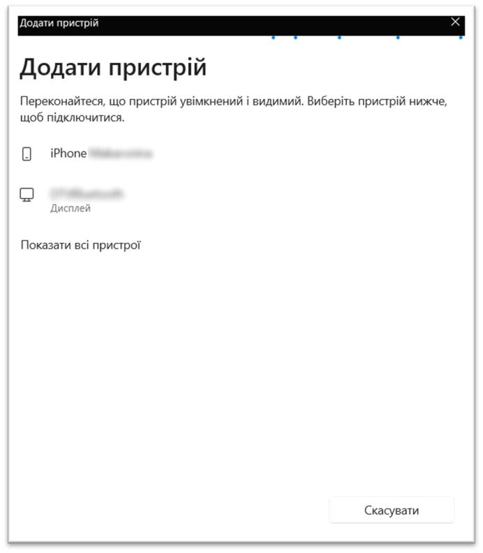 3. У Windows відкрийте «Параметри» → «Bluetooth і пристрої» → «Додати пристрій», виберіть ваш iPhone і з’єднайтеся.