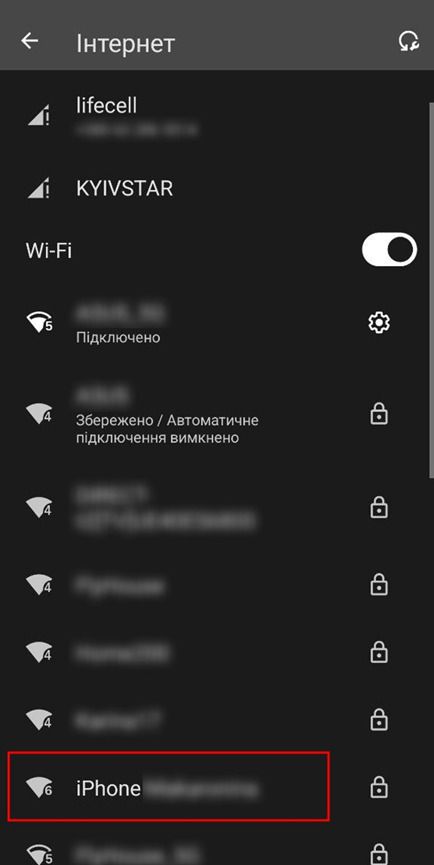 3. У списку мереж знайдіть свій iPhone (він зазвичай відображається у верхньому блоці як Особисті точки доступу).
