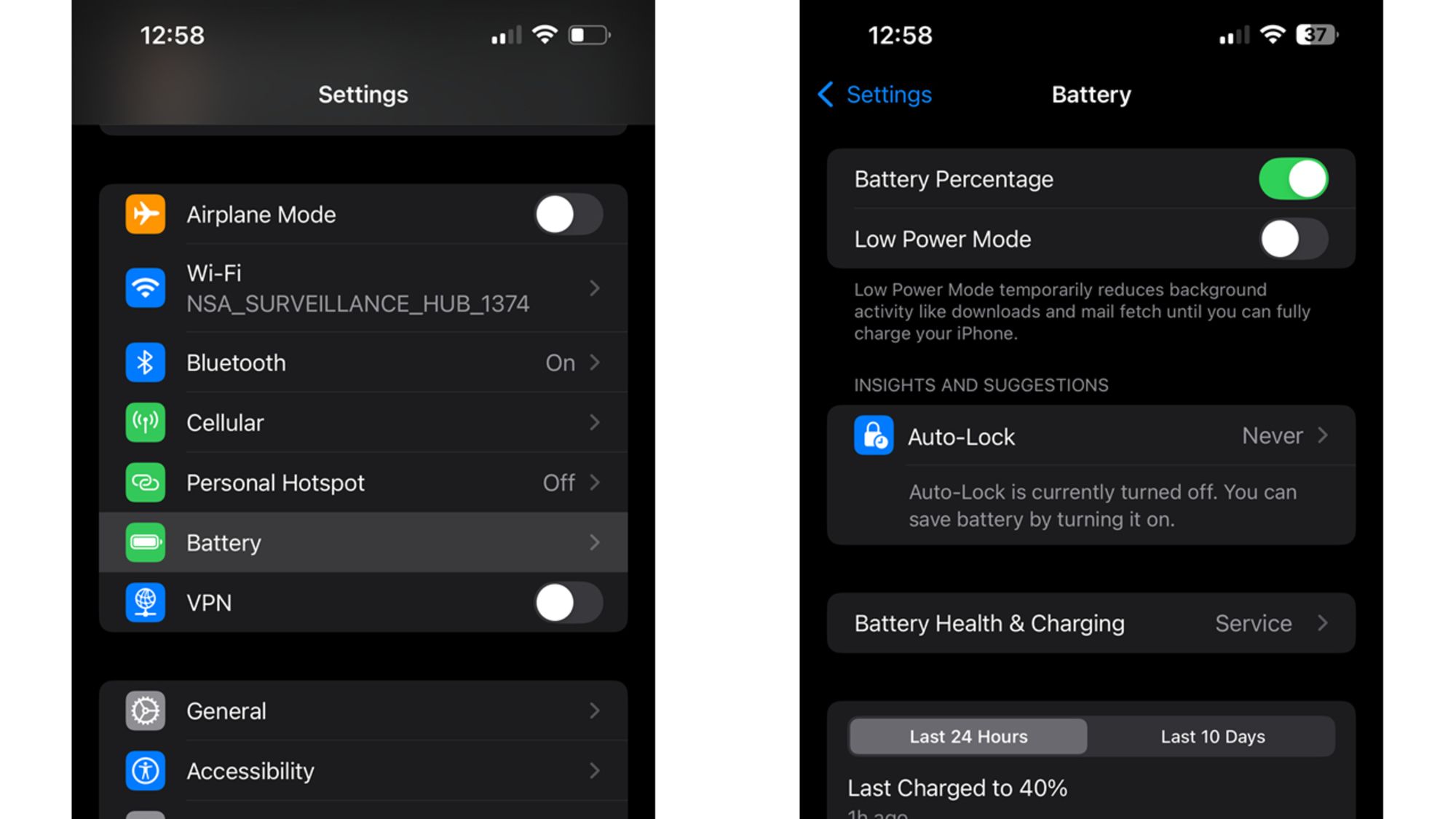 Графічний значок батареї не завжди зрозуміло показує, скільки заряду ще залишилося. Попри це Apple чомусь не вмикає відсоток заряду за замовчуванням — хоча він просто відображається всередині значка й не займає додаткового місця у верхній частині екрана.