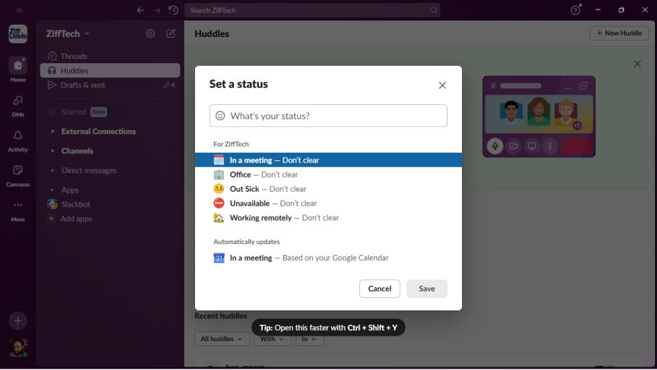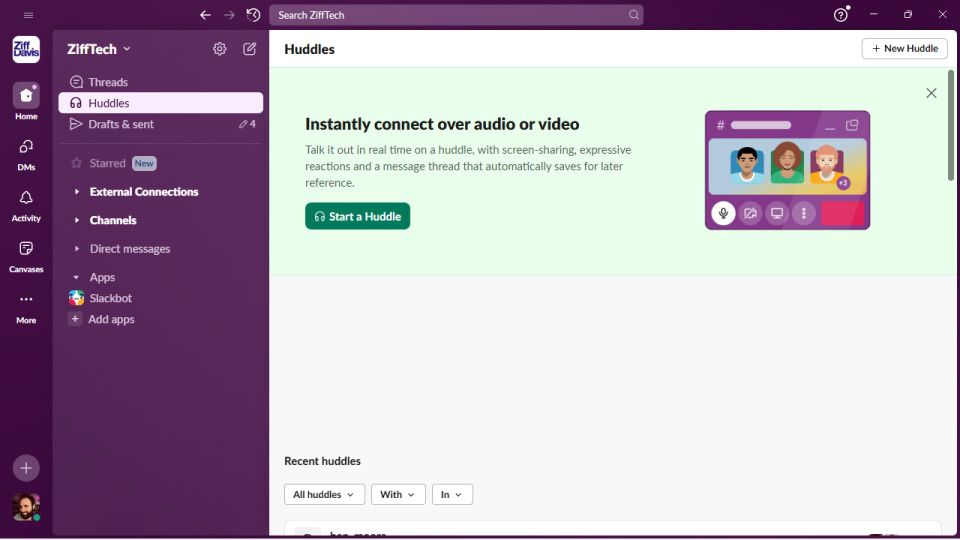 Навіть якщо у вас є Zoom або Google Meet, вони не завжди потрібні. Якщо треба швидко переговорити з колегою — запустіть Huddle прямо в Slack.