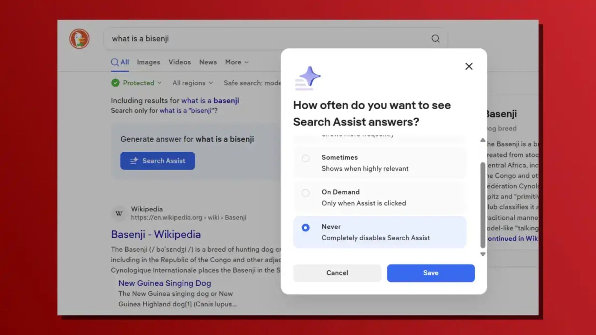 Ще один варіант — використовувати альтернативний пошуковий сервіс. Станом на зараз орієнтований на приватність пошуковик DuckDuckGo має AI-функції, але вони працюють за принципом opt-in, тобто вимкнені за замовчуванням. Схожий підхід застосовує Ecosia — AI-результати там не з’являються, якщо ви спеціально їх не вмикаєте.