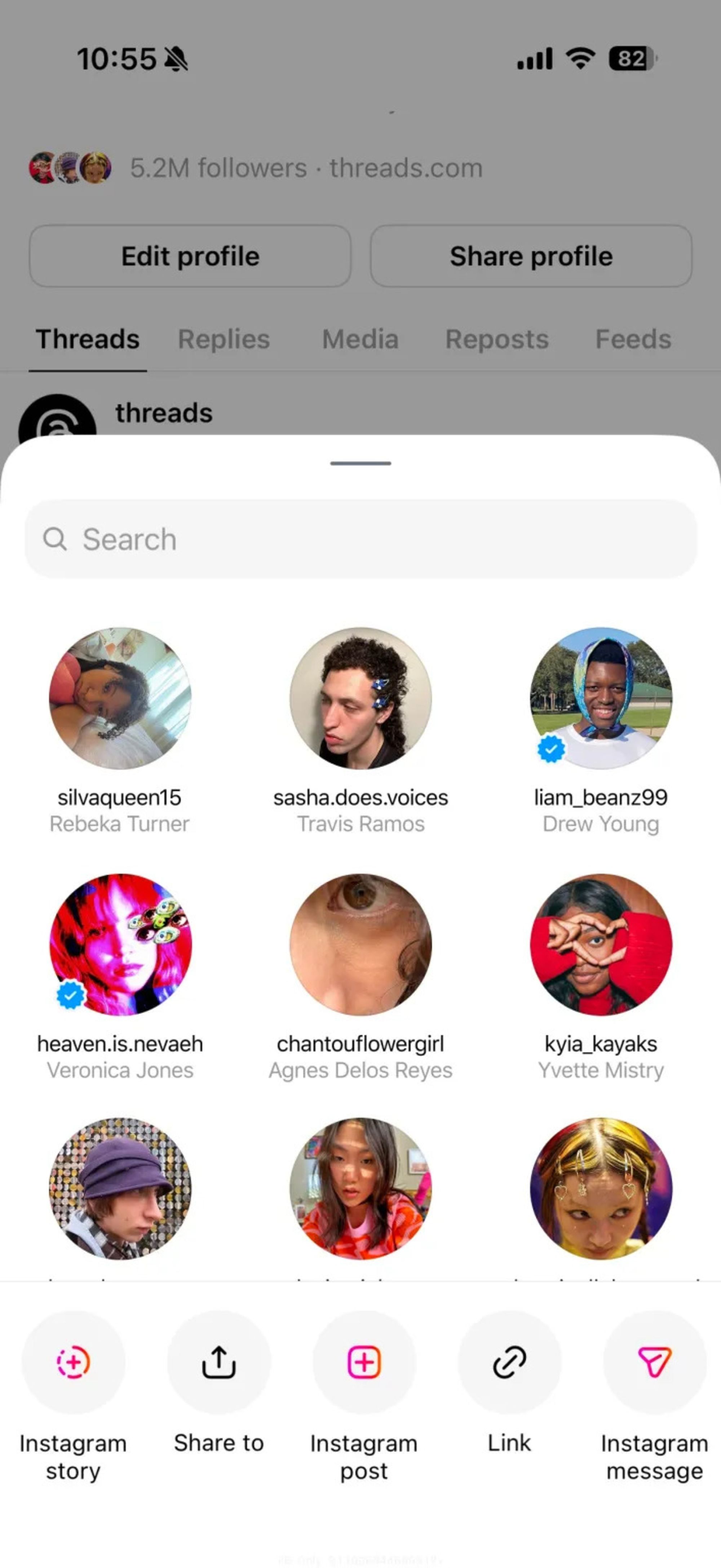 Користувачі можуть поділитися дописом із Threads у своїй Instagram Story без переходу на іншу платформу. Попередній перегляд того, який вигляд матимуть Stories, відображається безпосередньо в інтерфейсі Threads.