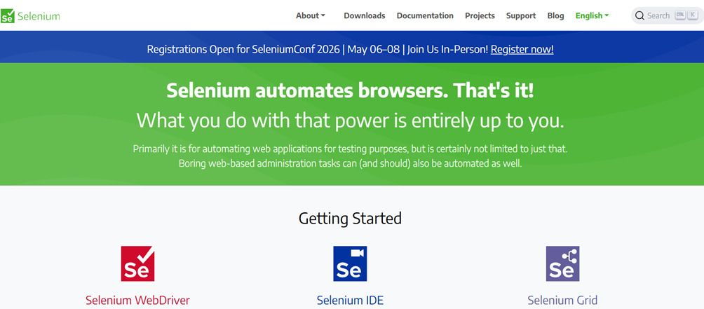 Один із найвідоміших open-source інструментів для автоматизації вебтестування. Його використовують насамперед для перевірки роботи вебзастосунків у різних браузерах, а сам проєкт охоплює не лише WebDriver, а й інші компоненти, зокрема Selenium Grid та Selenium IDE.