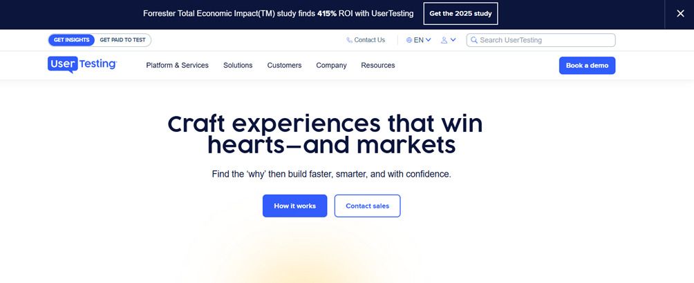 UserTesting — одна з найвідоміших платформ для дослідження користувацького досвіду, орієнтована на роботу з реальними людьми з цільової аудиторії. Сервіс дає можливість тестувати сайти, прототипи, веб- і мобільні застосунки, поєднуючи модеровані та немодеровані сесії.