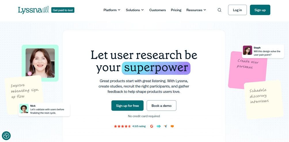 Lyssna — платформа для тестування юзабіліті, яка до 2023 року була відома як UsabilityHub. Сервіс орієнтований на швидкі UX-перевірки й роботу з великою вибіркою користувачів: панель тестерів налічує понад 500 тисяч людей, яких можна фільтрувати за десятками демографічних параметрів. За потреби до тестів легко залучити й власну аудиторію, що дає можливість контролювати бюджет і склад учасників.