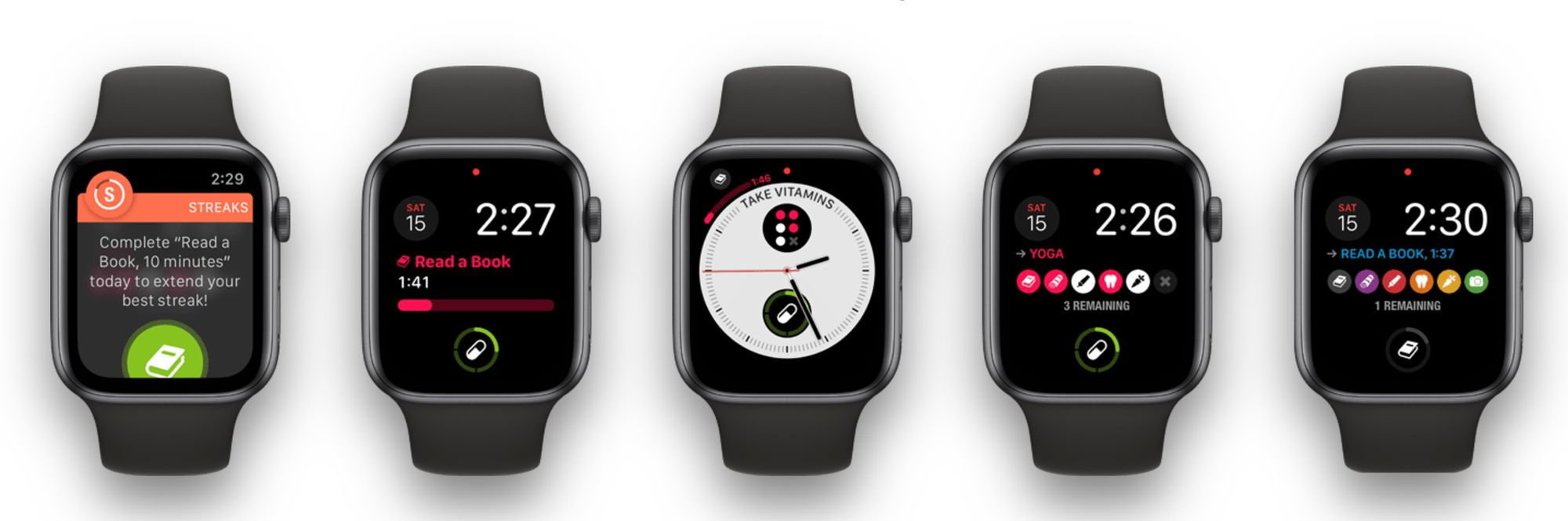 Apple Watch дає можливість швидко перевірити статус звичок і відмітити виконання без зайвих дій. Streaks добре працює як інструмент самодисципліни — для навчання, регулярних перерв, фізичної активності або робочих рутин.