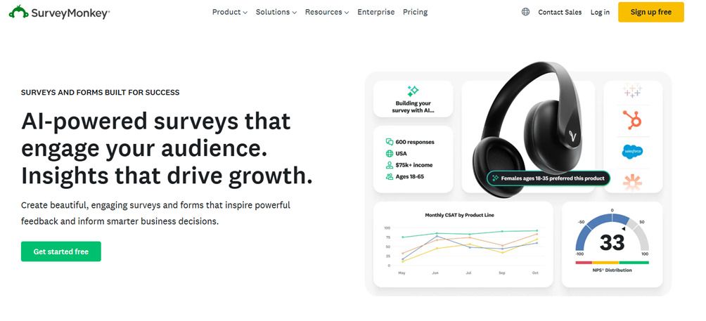 SurveyMonkey — один із найвідоміших сервісів для створення опитувань. Платформа дає можливість створювати анкети будь-якої складності, аналізувати відповіді й інтегрувати результати з CRM або маркетинговими системами.
