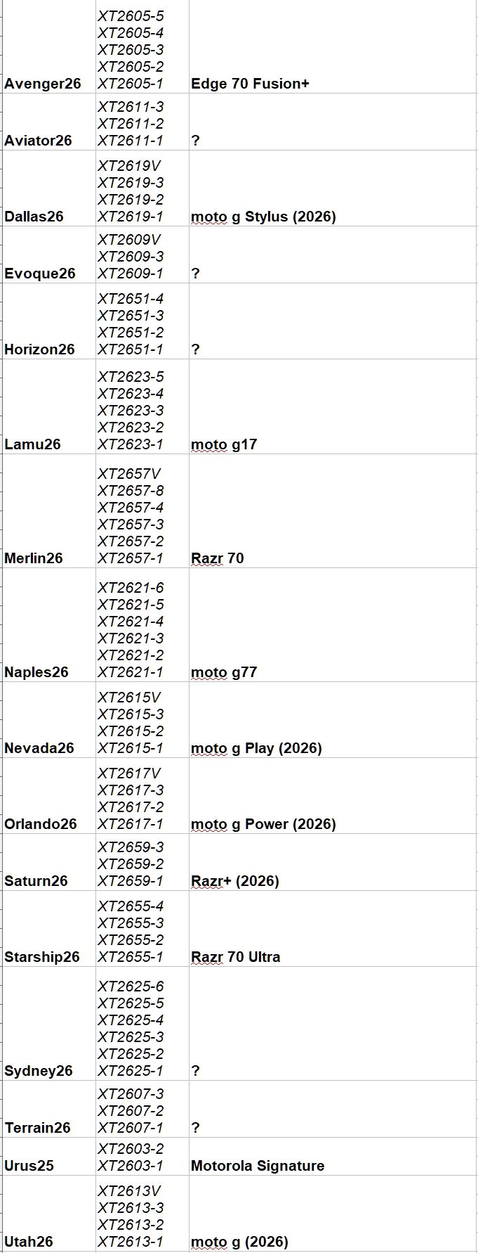 Відомий інсайдер Еван Бласс оприлюднив перелік смартфонів Motorola, запланованих до релізу у 2026 році. Для цього він скористався інструментом SmartFind і проаналізував дані на сайті Lenovo, якій належить бренд Motorola. На основі знайденої інформації інсайдер систематизував модельний ряд і зіставив кодові назви з майбутніми продуктами.