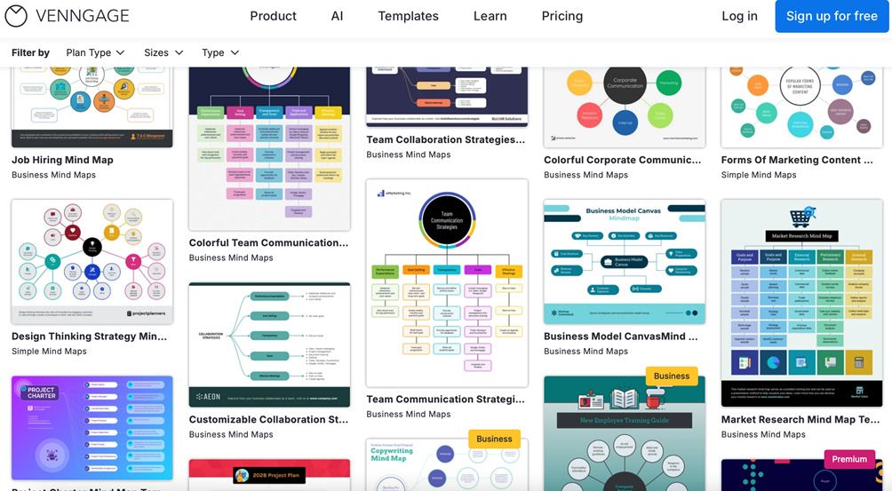Venngage Mind Map Maker — онлайн-інструмент з великою бібліотекою професійних шаблонів.