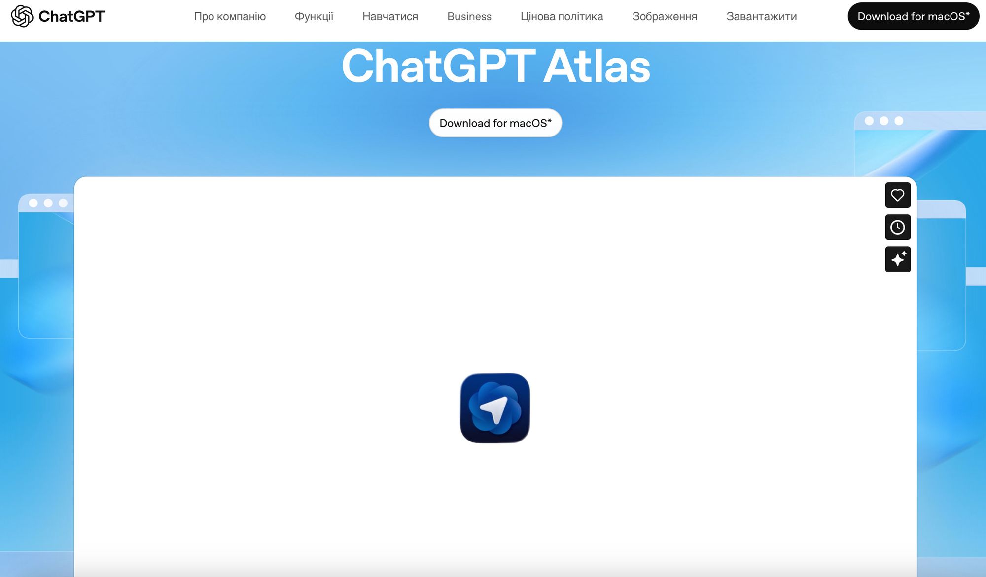 Atlas зараз доступний лише на macOS і заявлений як реліз для користувачів по всьому світу. Мова інтерфейсу залежить від налаштувань системи та самого браузера. Українську можна увімкнути, якщо вона вибрана у мовних параметрах.