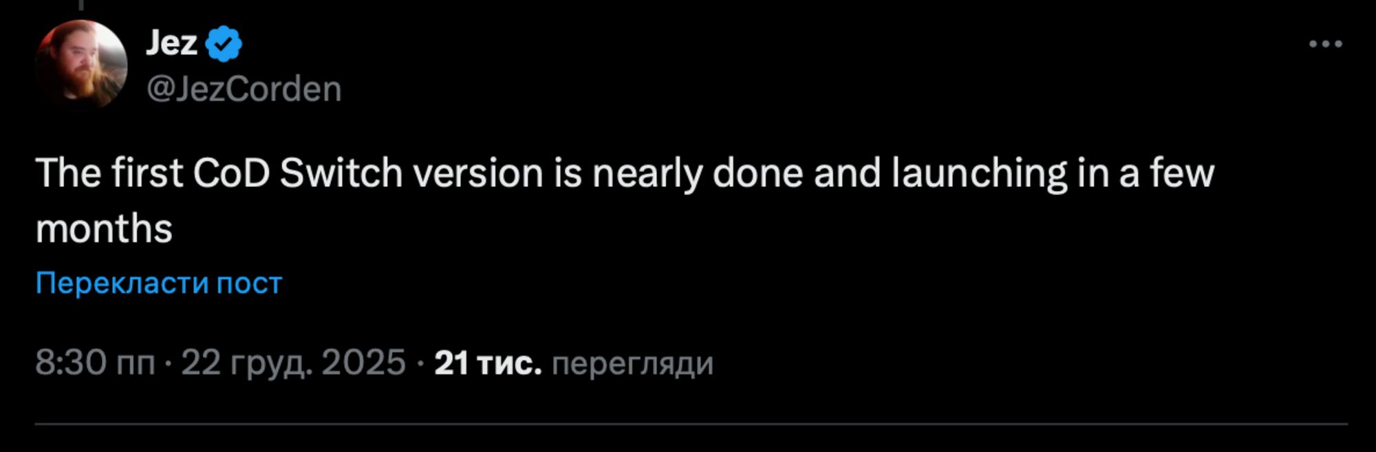 Після тривалої паузи навколо версії Call of Duty для Nintendo Switch з’явилися повідомлення про наближення релізу гри. Попри те що ще у 2023 році Microsoft оголосила про наміри перенести серію на гібридну консоль, жоден із шутерів досі не вийшов, а Activision не робила офіційних заяв щодо термінів запуску.